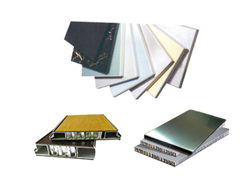 以鋁蜂窩、紙蜂窩為主,表面的貼面層一般有PET彩膜鋼板、抗倍特板、304不銹鋼等組成的復合板材,復合成型后的材料不僅具有不變形、抗彎曲強度大防水、防火及耐酸堿特性,而且綠色環保無污染,安裝簡便、快捷